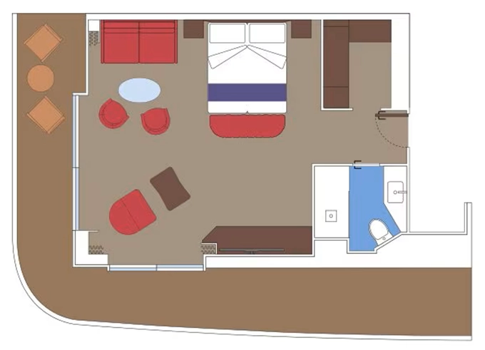 | SLP - Premium Suite Aurea Promenade & Ocean View 27 m² + balkón 9 m² s výhľadom na promenádu a na more. 11. paluba. Cenový model Aure | 3 903 € 3 903 € za osobu |